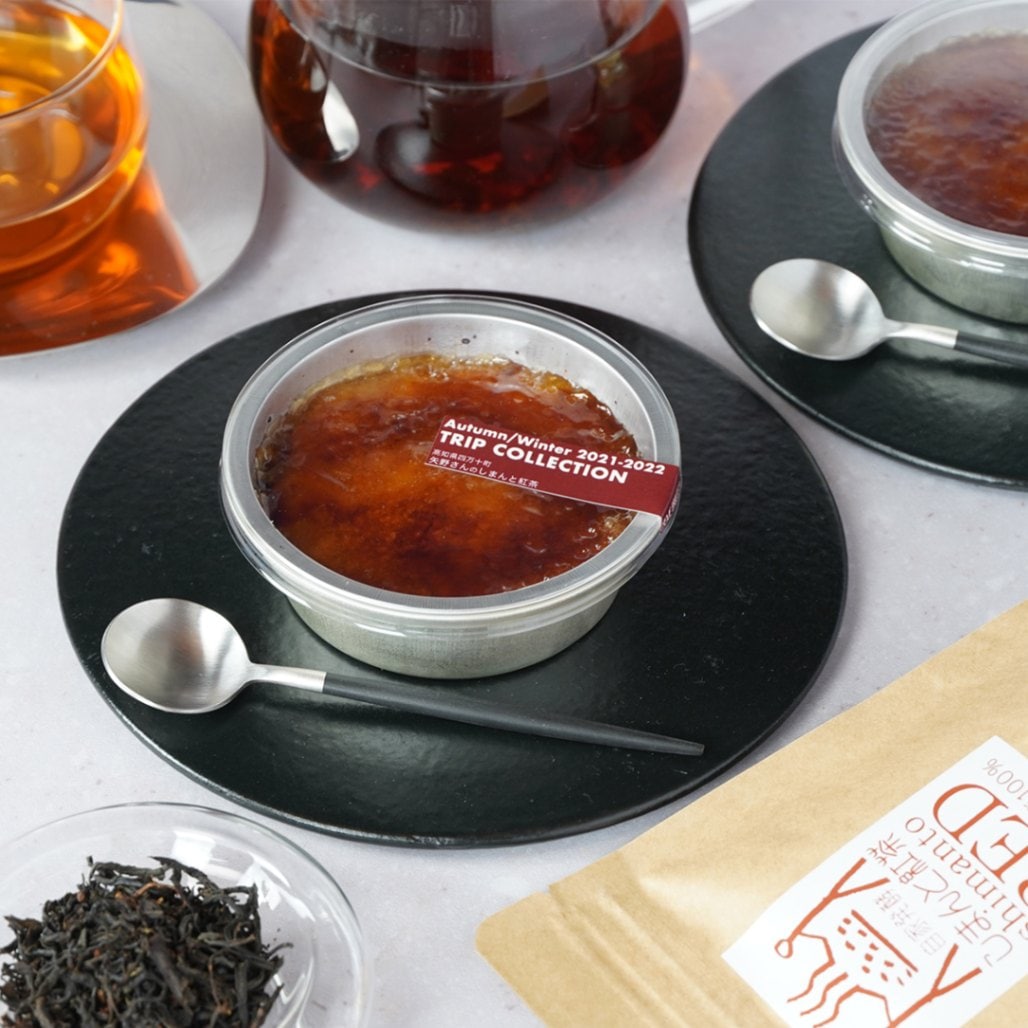 日本を旅するクレームブリュレをコンセプトに、全国を旅するように各地の生産者とその素材に出会える「TRIP COLLECTION」として、高知県四万十町のお茶農家 矢野さんのしまんと紅茶を使用したクレームブリュレとプレーンタイプのクレームブリュレの食べ比べをお届けします。